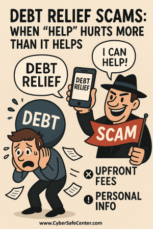 Remember: financial struggles are tough enough. Don’t let a scammer add insult to injury by turning your search for relief into a deeper trap.